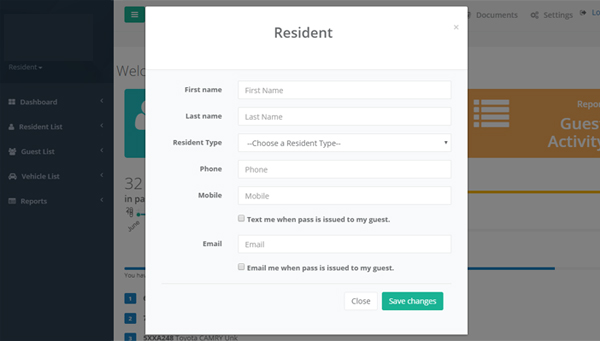 Resident list is available on left side menu, where you can view all the residents listed under your address.