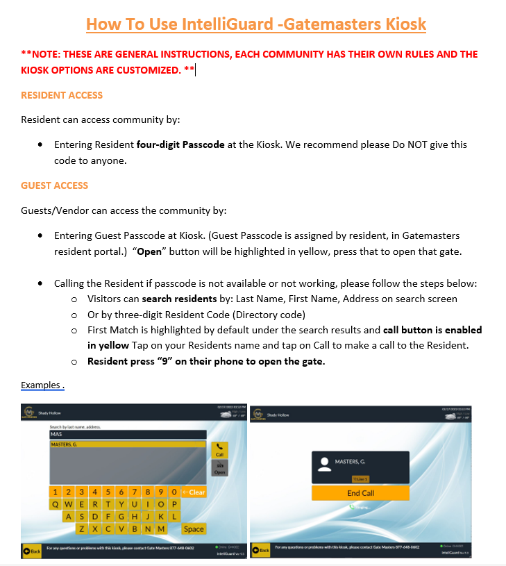 Here is direct link to Resident module www.gatemastersinc.com/Resident/Account/Login
